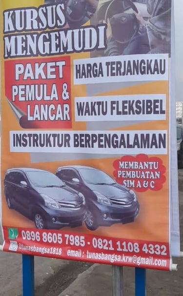 Jl. Raya Kosambi Wates, Desa Pancawati, Klari, Karawang, tempat belajar mengemudi yang nyaman dan aman.